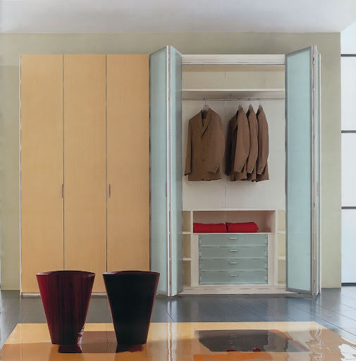 Sada pro skládací dveře, otevírání vlevo. K sadě je nutno objednat středové závěsy ve stejném počtu jako boční závěsy. Vozík možno zakrýt krytkou. Pro vysoká křídla k dispozici spodní kluzák pro stabilnější chod.